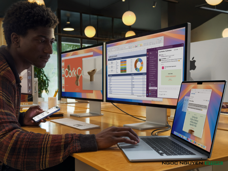 MacBook Air 15-inch M4 vẫn giữ lại thiết kế mỏng nhẹ ấn tượng, thời lượng pin lên đến 18 giờ, hỗ trợ tối đa hai màn hình ngoài và khả năng xử lý các tác vụ AI cực kì mượt mà.