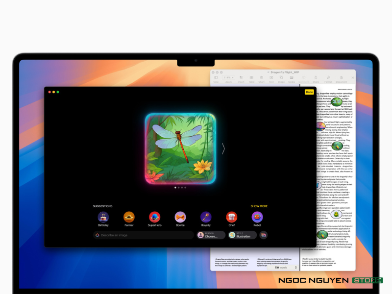Tiếp nối những phiên bản tiền nhiệm, MacBook Air chip M4 vẫn tiếp tục được thiết kế để đáp ứng các tác vụ trí tuệ nhân tạo, đem lại các tính năng mới cực kì thú vị, biến Mac trở nên hữu ích và mạnh mẽ hơn. Người dùng có thế sáng tạo hình ảnh bản thân trên Image Play Ground, tạo biểu tượng mới với Genmoji hay làm cho văn bản thêm sinh động hơn với Công Cụ Viết. Đặc biệt với những cải tiến mới của Siri – được tích hợp chat GPT, người dùng có thể hoàn thành công việc nhanh và dễ dàng hơn bao giờ hết. Việc truy cập Chat GPT ngay bằng Siri sẽ hoàn toàn miễn phí, không cần tạo tài khoản. Các biện pháp bảo vệ quyền riêng tư vẫn được tích hợp sẵn — địa chỉ IP của họ sẽ bị che đi và Open AI sẽ không lưu trữ các yêu cầu trên Siri. Người dùng có thể chọn bật chức năng tích hợp Chat GPT hay không, cũng như toàn quyền kiểm soát thời điểm sử dụng và thông tin được chia sẻ với Chat GPT.