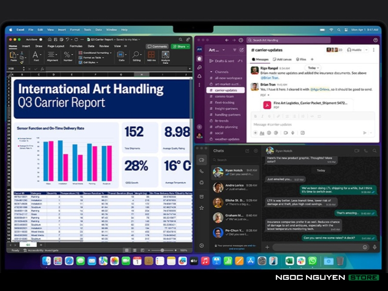 Hệ điều hành macOS đã được tối ưu để vận hành mượt mà tất cả những phần mềm làm việc chuyên nghiệp nhất. Bạn có thể thỏa sức sử dụng bộ công cụ Microsoft 365, liên lạc qua Zoom và nhắn tin qua Slack. Ngoài ra, sản phẩm còn hỗ trợ các phần mềm đồ họa chuyên nghiệp như Figma, Illustrator; dựng hình 3D hiệu quả qua Octane X, Blender; lập trình bằng Xcode, Create ML hoặc chỉnh sửa video bằng Premiere Pro, Final Cut Pro... Tất cả nhằm đem lại sự hỗ trợ tối ưu cho công việc của bạn.