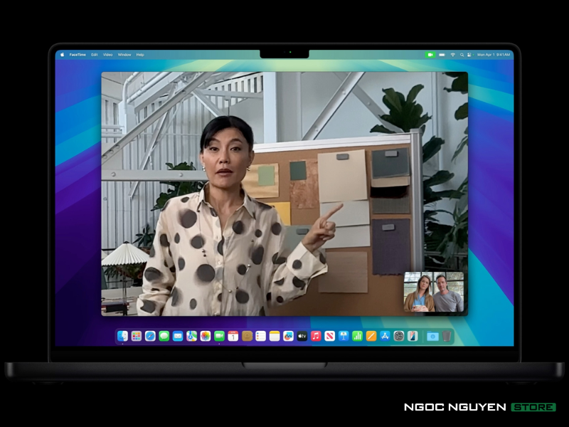 Nhờ được tích hợp công nghệ Centre Stage trên Camera 12MP MacBook Pro 14 inch M4, từ đó khi chụp hình hay trong các cuộc gọi video, AI sẽ tự động căn chỉnh khung hình để giữ chủ thể luôn ở trung tâm. Hơn nữa, Camera còn hỗ trợ Desk View, cho phép người dùng trình bày tài liệu hoặc thao tác trực tiếp trên bàn làm việc trong khi gọi video, bổ sung góc nhìn sáng tạo và chuyên nghiệp hơn.