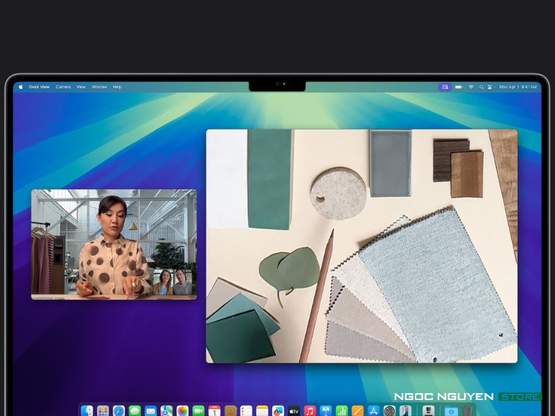 MacBook Pro M4 Max được trang bị camera 12MP Center Stage, giúp người dùng luôn ở trung tâm khung hình trong các cuộc họp video. Chế độ Center Stage tự động điều chỉnh góc quay, trong khi Desk View cung cấp góc nhìn rộng hơn cho không gian làm việc, lý tưởng để chia sẻ tài liệu.
