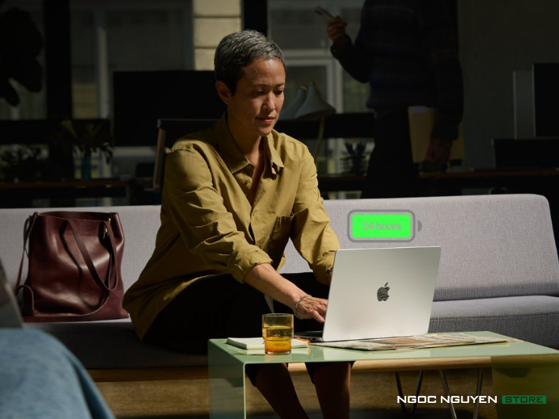 Về thời lượng pin, mẫu 16 inch có thể hoạt động đến 24 giờ. Nhờ thiết kế tiết kiệm năng lượng của chip M4 Max, người dùng có thể làm việc cả ngày mà không cần phải sạc nhiều lần, mang lại sự tiện lợi cho công việc hiện đại.