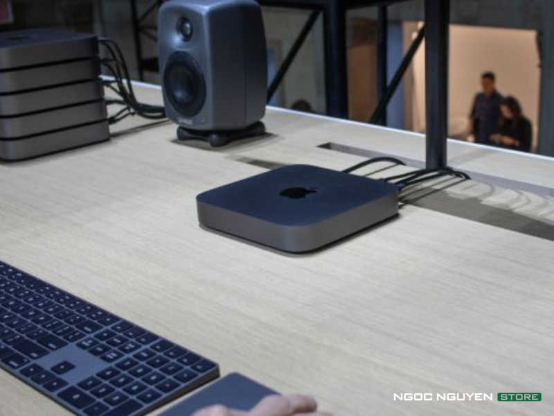 Để lưu trữ các tệp dữ liệu, máy Mac mini được trang bị ổ SSD PCIe 128GB có tốc độ đọc tuần tự lên đến 3.4 GB/s. Nếu bạn muốn thêm thiết bị ngoại vi bên ngoài, bốn cổng Thunderbolt 3 hỗ trợ tốc độ truyền hai chiều lên tới 40Gb/s, đồng thời hỗ trợ 10Gb/s USB 3.1 Gen 2 (USB 3.1), sạc thiết bị và GPU ngoài. Nhờ có hai cổng USB 3Gb/s USB 3.1 Gen 1 (USB 3.0), bạn vẫn có thể kết nối các thiết bị khác với hệ thống này.