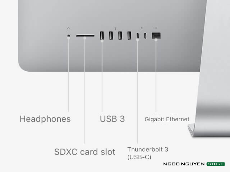 iMac 5K 2019 MRR12 giữ nguyên các cổng kết nối so với iMac 5K 2017, cụ thể các cổng như sau:
