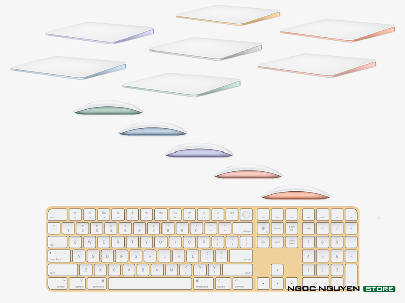 Magic Keyboard và Magic Mouse có màu sắc “tur sur sur” với iMac nhưng chỉ có trên phiên bản cao cấp hơn sẽ được tích hợp Touch ID.
