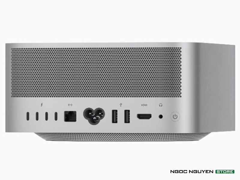Mac Studio cho phép bạn tạo nên studio trong mơ của riêng bạn với bộ 12 cổng kết nối hiệu suất cao đặt ở phía trước và phía sau máy để dễ dàng tiếp cận. Dễ dàng kết nối hoặc ngắt kết nối máy ảnh, ổ cứng rời hay bất kỳ thiết bị nào khác của bạn từ phía trước Mac Studio. Mở rộng tầm nhìn với khả năng kết nối đến 4 màn hình rời Pro Display XDR và một TV 4K. Giắc âm thanh hỗ trợ headphone có trở kháng cao và các loa khuếch đại.