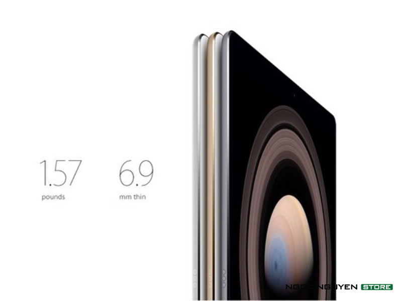 Ngay cả khi mang trên mình một màn hình cực lớn, iPad Pro vẫn rất mỏng và nhẹ – Chỉ mỏng 6.9mm và trọng lượng đạt ~700g. Đó là nhờ vào thiết kế unibody mang tính chuẩn mực, hài hòa và cứng cáp. Cảm giác cầm nắm thực sự dễ dàng hơn so với những chiếc notebook hay tablet màn hình lớn khác.