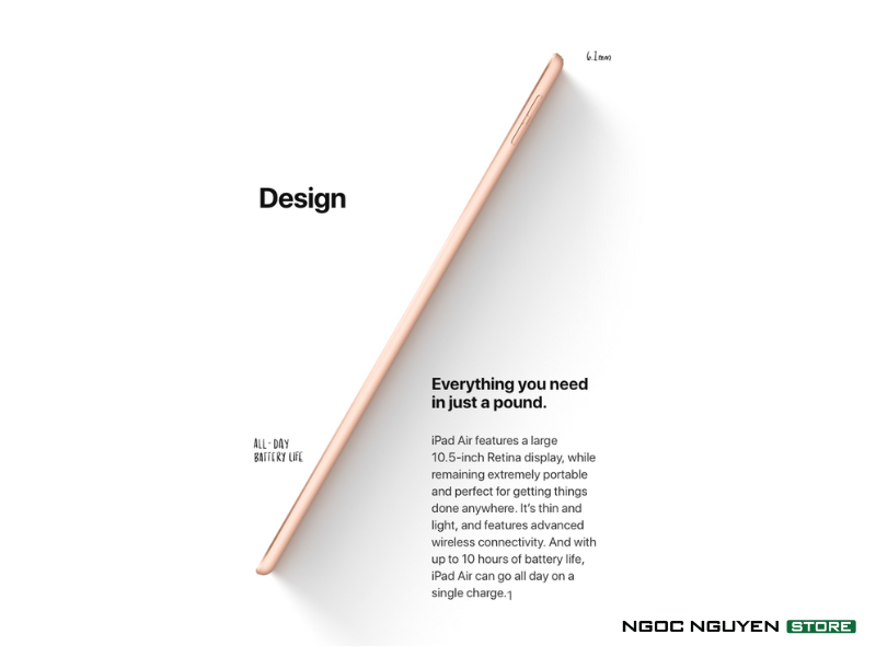 Dung lượng pin iPad Air 3 vượt trội cung cấp thời gian sử dụng lâu dài