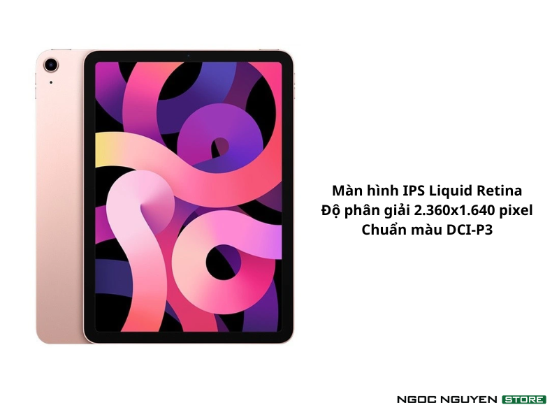 Về màn hình, iPad Air 10.9 2020 mới sở hữu màn hình IPS Liquid Retina với kích thước 10.9 inch. Độ phân giải của màn hình 2.360 x 1.640 pixel, mật độ điểm ảnh 264 ppi mang đến chất lượng ảnh vượt trội. Người dùng sẽ cảm nhận được hình ảnh sống động, màu sắc chân thật nhất.