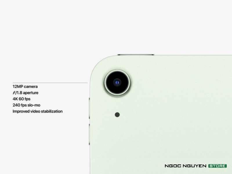Về camera, iPad Air mới được trang bị camera trước 7MP, khẩu độ f/2.2, mang đến chất lượng 1080p khi video call, Smart HDR.