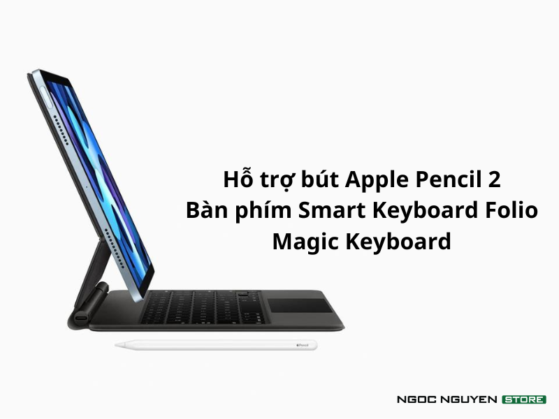 iPad Air hỗ trợ bút Apple Pencil 2 cùng với đó là phụ kiện bàn phím Smart Keyboard Folio và Magic Keyboard phiên bản iPad Pro 11 (2020).