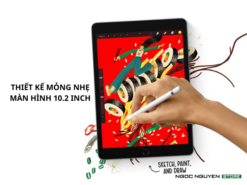iPad 10.2 inch 2021 vẫn mang thiết kế đặc trưng bởi sự mỏng và nhẹ, giúp người dùng dễ thao tác, cầm nắm trong hàng giờ liền mà không hề cảm thấy bị mỏi hay khó chịu. Thiết kế nguyên khối đã là nét đặc trưng của dòng sản phẩm iPad giúp mang lại vẻ sang trọng khi sử dụng tên tay.