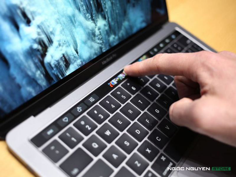 Touch Bar là cảm ứng đa điểm nằm trên màn hình OLED chất lượng Retina và ngang song song bàn phím. Dải màn hình với tên gọi Touch Bar sẽ là nơi hiển thị các nút điều khiển hoặc nút chức năng ngữ cảnh tùy vào ứng dụng mà bạn đang chạy trên màn hình chính. Người dùng có thể dùng nó để chỉnh sửa trong ứng dụng hoặc tua nhanh, chậm khi xem video. Ngoài ra, Touch Bar còn hiển thị các từ gợi ý khi người dùng đang gõ văn bản tương tự như cách hiển thị bàn phím IOS hoặc đưa ra những folder gợi ý hoặc sort mail theo yêu cầu.