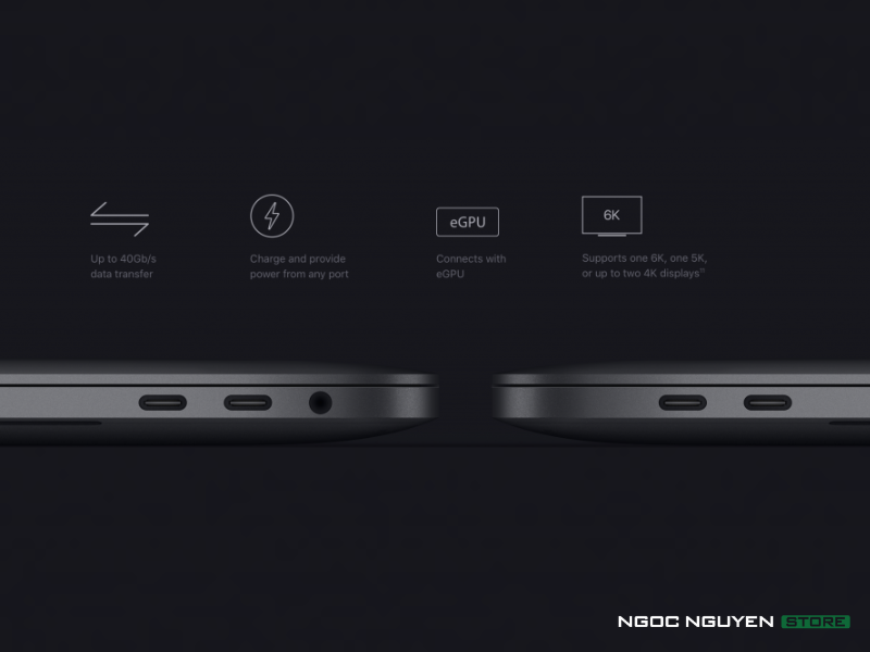 Cổng ThunderPort 3 dần trở thành quy chuẩn chung của các thiết bị Laptop và di động nó đem lại băng thông cực lớn lên tới 40Gb/s cùng với khả năng Stream video và sạc ở tất cả các cổng trên Macbook Pro của Apple. Dễ dàng cắm các cổng kết nối mà không cần để ý cắm sao cho đúng.