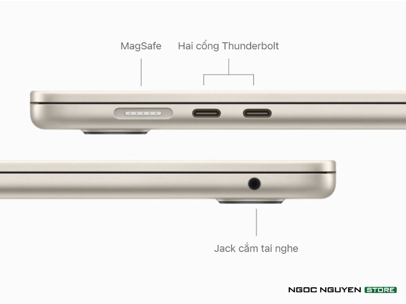 Cổng giao tiếp Thunderbolt 3 hỗ trợ kết nối phụ kiện với tốc độ cao, kết nối với màn hình độ phân giải lên tới 6K và cũng có thể sạc máy khi bạn quên đem theo sạc của máy. Sạc nam châm MagSafe 3 dễ dàng cắm vào, rút ra, phòng tránh các sự cố rơi làm rớt máy.