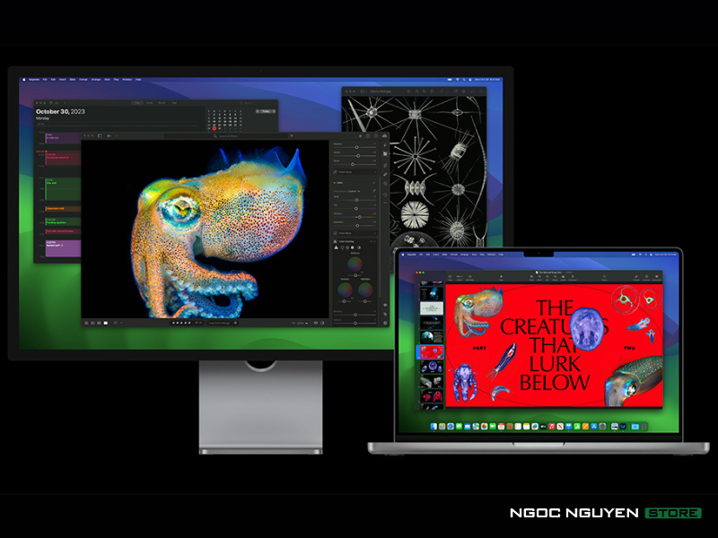 Tính năng True Tone đặc trưng của những dòng máy Mac tự động cân bằng và điều chỉnh độ sáng màn hình cho tương thích với môi trường, đảm bảo hơn về sức khỏe thị giác. Ngoài ra, ProMotion cho tốc độ làm mới thích ứng tần số quét 120 Hz, tạo cảm giác thêm mượt mà với những khung hình chuyển động tốc độ cao.