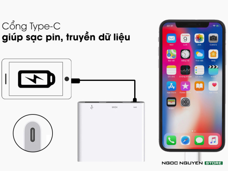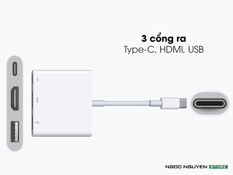 Adapter Type C sang HDMI-Type C-USB Apple MJ1K2 giúp chuyển đổi các nhu cầu sử dụng của bạn từ điện thoại ra ngoài như xuất hình ảnh ra màn hình lớn, truy cập dữ liệu từ USB và sạc pin nhanh.