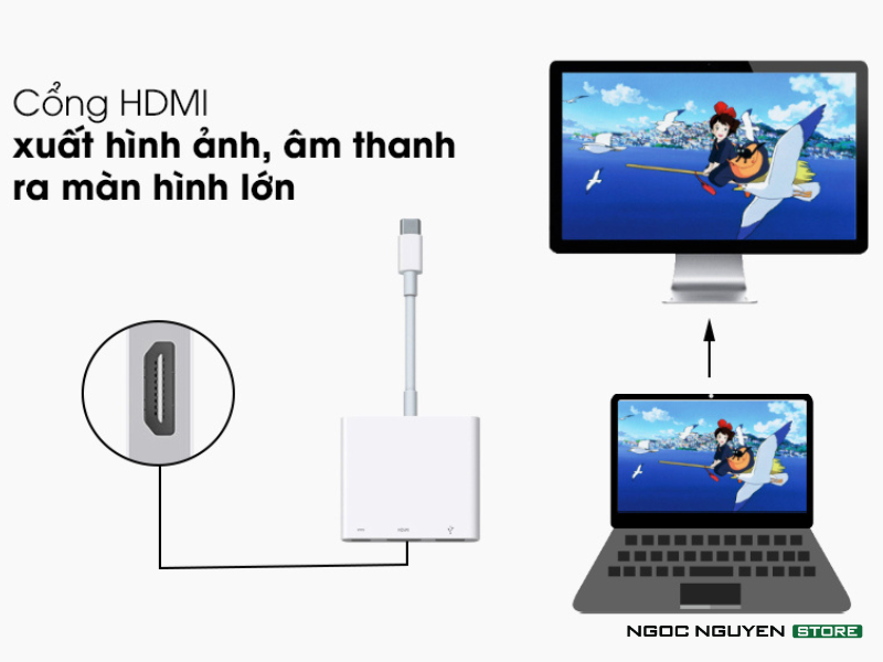 Truyền hình ảnh và âm thanh ra màn hình lớn như tivi, laptop hay máy chiếu... với cổng HDMI