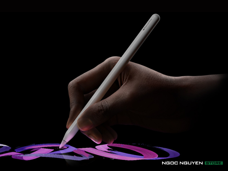 Bút cảm ứng Apple Pencil Pro với độ trễ thấp cũng như nhạy độ nghiêng giúp mang lại trải nghiệm sử dụng chân thực. Bút với độ chính xác cao đến từng điểm ảnh, Apple Pencil Pro có thể thực sử dụng để vẽ, phác thảo. Đặc biệt, mẫu bút Apple Pencil thế hệ mới này còn sở hữu khả năng gắn kết nam châm cũng như sạc không dây tiện lợi.