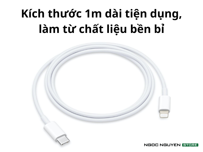 Độ dài của cáp Apple USB-C to Lightning 1M lên đến 1m. Đây là khoảng cách phù hợp cho mọi trường hợp sử dụng. Vì thế bạn có thể sử dụng khi đang ngồi làm việc ở nhà hoặc giải trí ở quán cafe.
