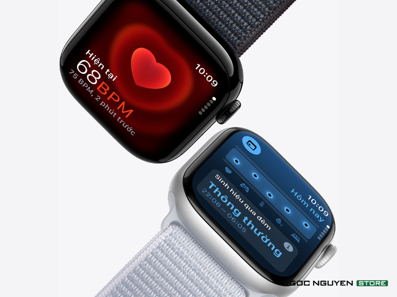 Bên cạnh đó, Series 10 còn trang bị các tính năng theo dõi sức khỏe tim mạch toàn diện. Ứng dụng ECG cho phép người dùng ghi lại điện tâm đồ ngay trên cổ tay, giúp phát hiện các dấu hiệu bất thường của nhịp tim. Tính năng theo dõi nhịp tim liên tục cũng cung cấp thông tin hữu ích về tình trạng sức khỏe tim mạch, đặc biệt là trong quá trình luyện tập.