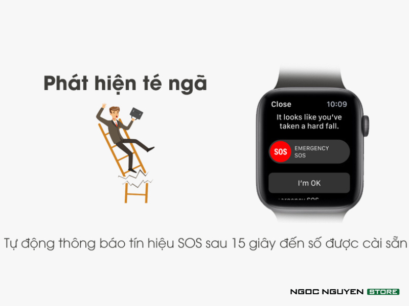 Đồng hồ có tính năng phát hiện khi bạn bị ngã và bất động 15 giây, nó sẽ phát tín hiệu SOS đến số được cài sẵn.