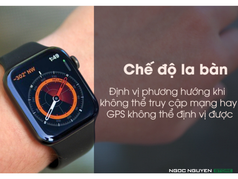 Điểm cải tiến ở Apple Watch S5 so với các thế hệ trước đó là la bàn từ tính để xác định phương hướng. Tính năng này sẽ hữu ích đối với những người dùng thích đi chạy bộ trong rừng, giúp định vị phương hướng ở nơi không thể truy cập mạng hay GPS không thể định vị được.