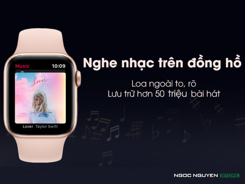 Apple Watch thế hệ mới hỗ trợ kho nhạc số Apple Music với hơn 50 triệu bài hát có sẵn. Bạn có thể nghe nhạc trực tiếp trên đồng hồ bằng loa ngoài trong trường hợp không có loa, điện thoại kế bên.