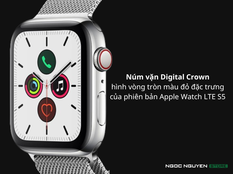 - Apple Watch LTE sẽ có núm vặn Digital Crown màu đỏ nguyên núm xoay đối với Series 3 và viền đỏ với Series 4 và Series 5.