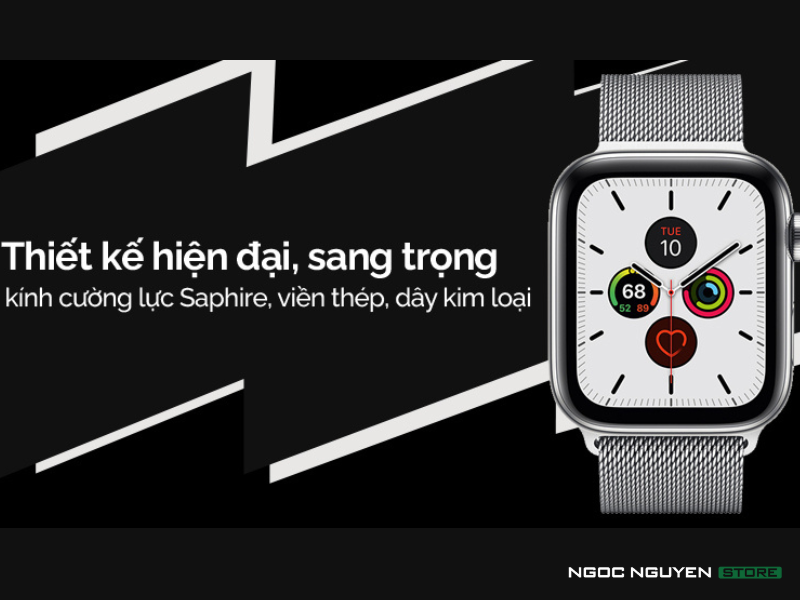 Apple Watch S5 viền thép dây thép bạc có thiết kế trẻ trung, năng động cùng màn hình OLED Retina luôn hiển thị, đồng hồ có mặt kính sapphire bền bỉ và eSim độc đáo. Bên cạnh đó, nó còn có có thể chăm sóc sức khỏe của bạn như theo dõi nhịp tim, phát hiện té ngã, theo dõi giấc ngủ, theo dõi chu kỳ kinh nguyệt, đa dạng về cái bài tập thể thao giúp bạn rèn luyện sức khỏe. Chiếc đồng hồ này sở hữu hàng loạt tính năng thời thượng mà nhiều hãng đồng hồ đang hướng tới. Apple Watch S5 hứa hẹn là một chiếc đồng hồ thông minh lý tưởng dành cho các tín đồ công nghệ hay là những nhân viên văn phòng, nó giúp bạn có những trải nghiệm thú vị.