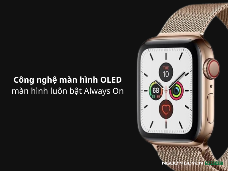 Apple Watch S5 LTE sử dụng tấm nền OLED cao cấp và màn hình Retina cho độ sáng cao và độ tương phản tốt. Với kích thước 1.78 inch, đủ rộng để hiển thị đầy đủ các thông tin.