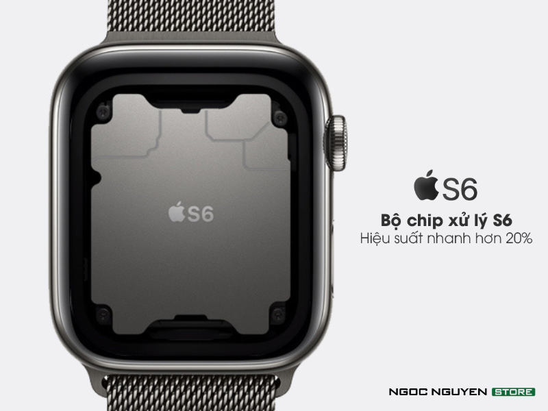 Phần cứng bên trong của chiếc Apple S6 cũng được nâng cấp mạnh mẽ khi trang bị bộ chip S6 có hiệu năng nhanh hơn 20% so với thế hệ chip Apple S5, đem đến cho bạn những trải nghiệm thú vị mà không bị giật lag, tốc độ xử lí nhanh và mượt mà.