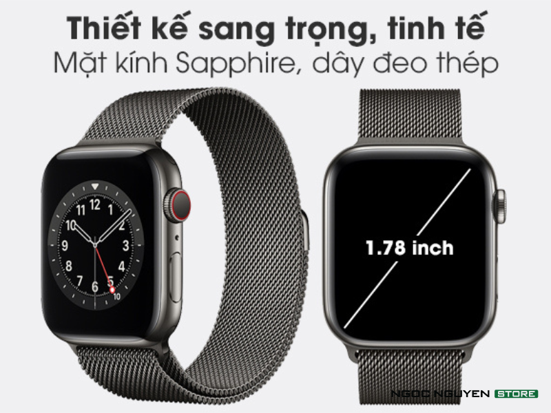 Apple Watch S6 LTE 44mm viền thép dây thép mang thiết kế thời thượng