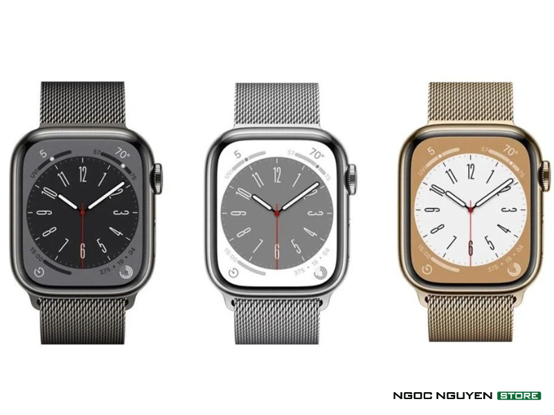 Khác với bản tiêu chuẩn sử dụng dây cao su, phiên bản Apple Watch Series 8 Cellular này được trang bị sẵn quai thép được chế tác với quy trình đặc biệt để vừa đảm bảo tính chắc chắn, cao cấp mà vẫn mềm mại thân thiện trên tay. Sản phẩm đem đến bộ màu sắc khác biệt so với phiên bản thường, bao gồm: Đen, Bạc và Vàng. Tất cả đều có độ bóng tinh xảo và phô diễn vẻ quyến rũ khác biệt.
